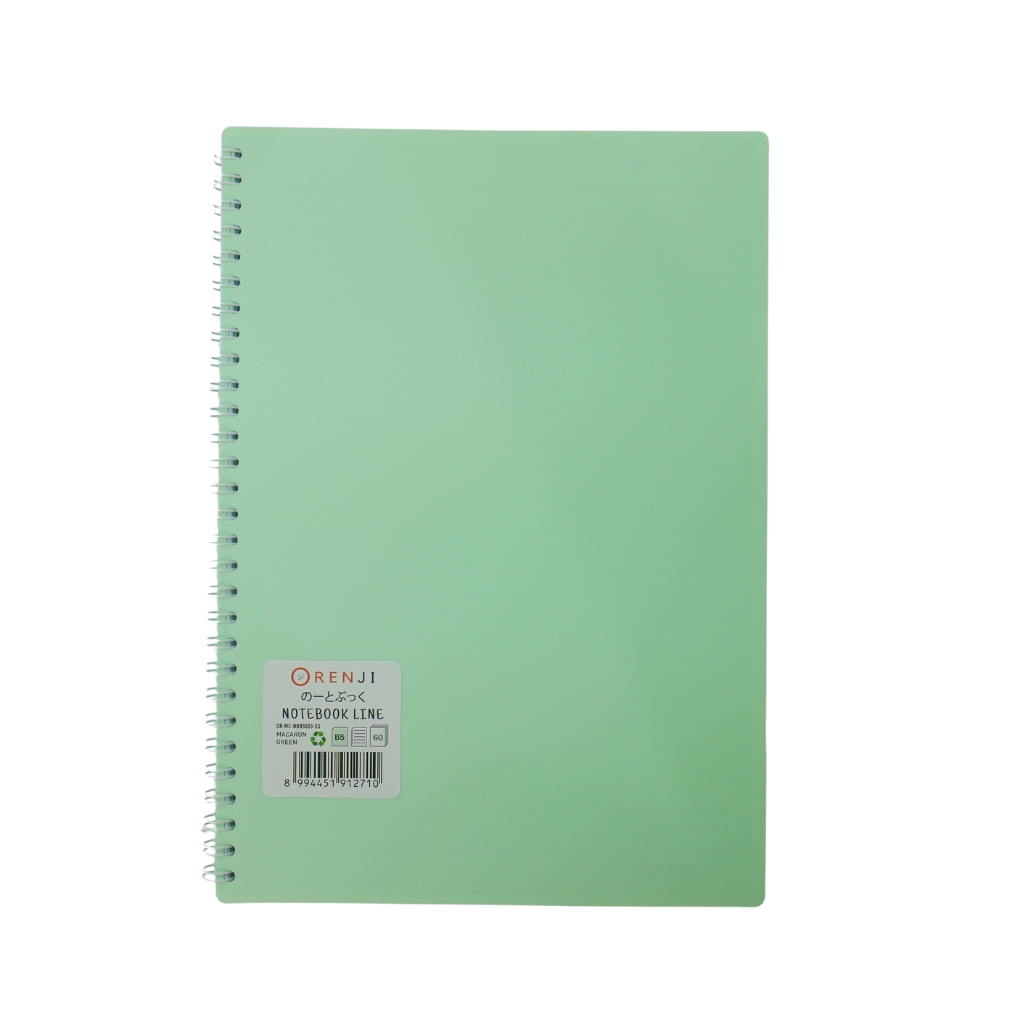 ORENJI Notebook Macaron B5 LINE Spiral Samping - Light Green