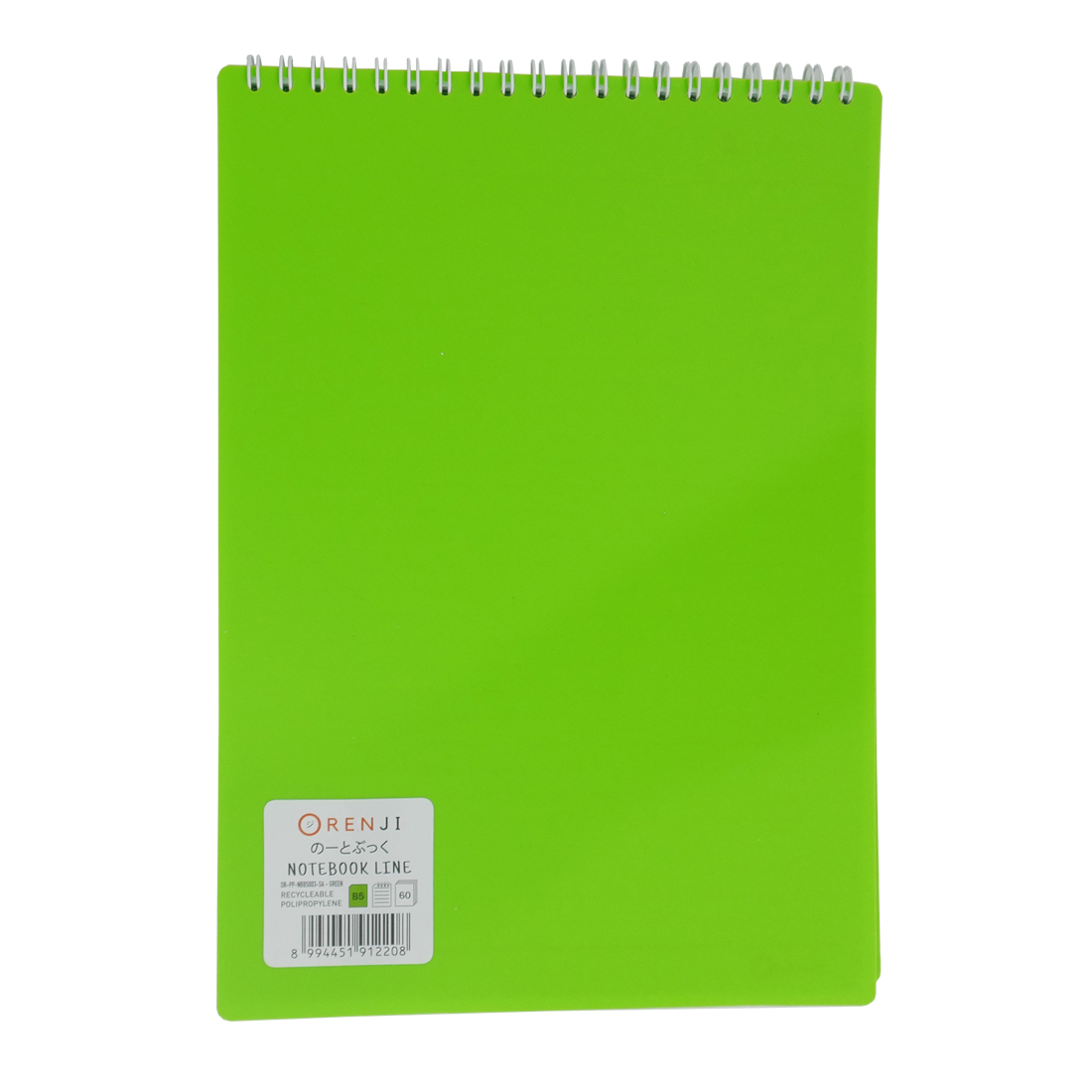 ORENJI Notebook Neon PP Cover Colour B5 LINE Spiral Atas - Green