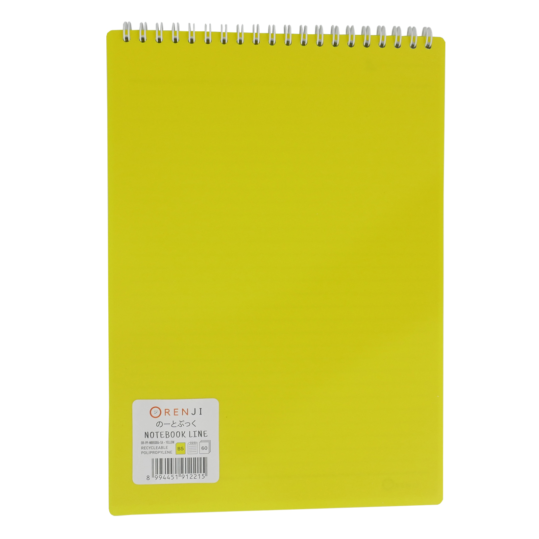 ORENJI Notebook Neon PP Cover Colour B5 LINE Spiral Atas - Yellow