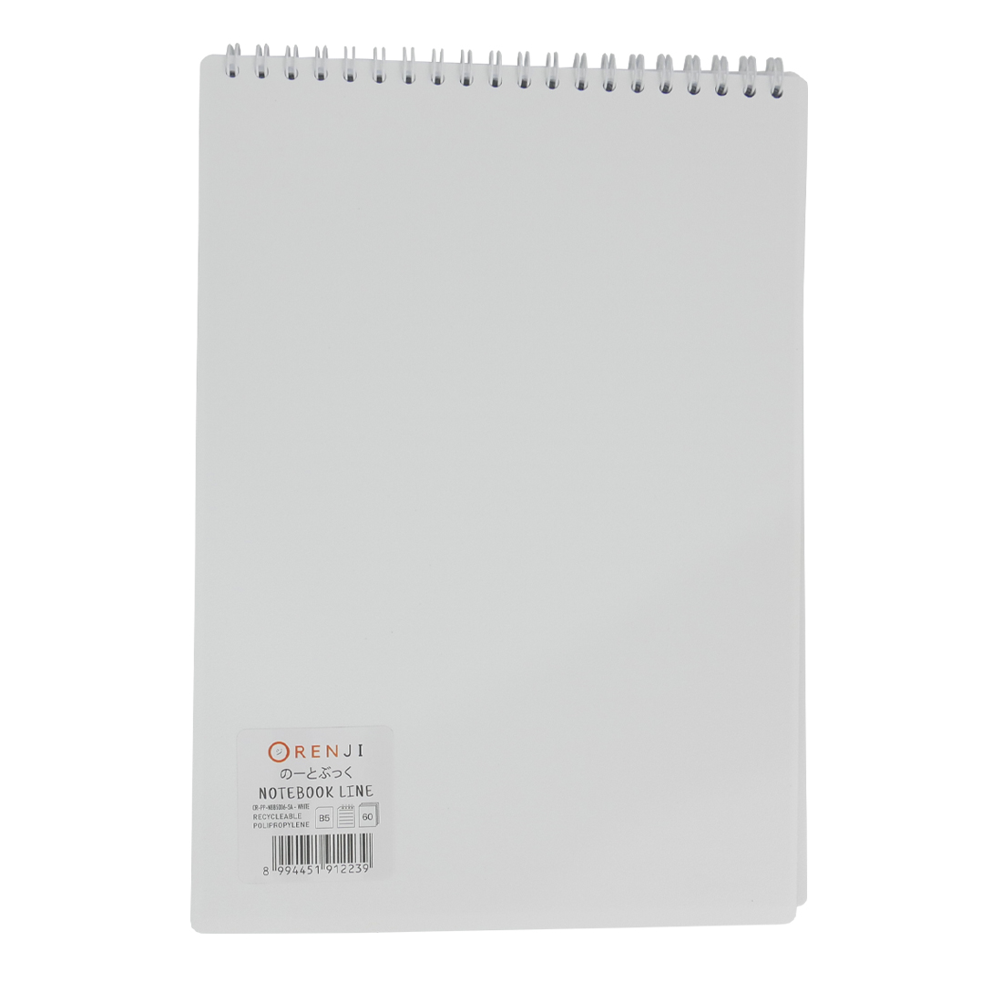 ORENJI Notebook Neon PP Cover Colour B5 LINE Spiral Atas - White