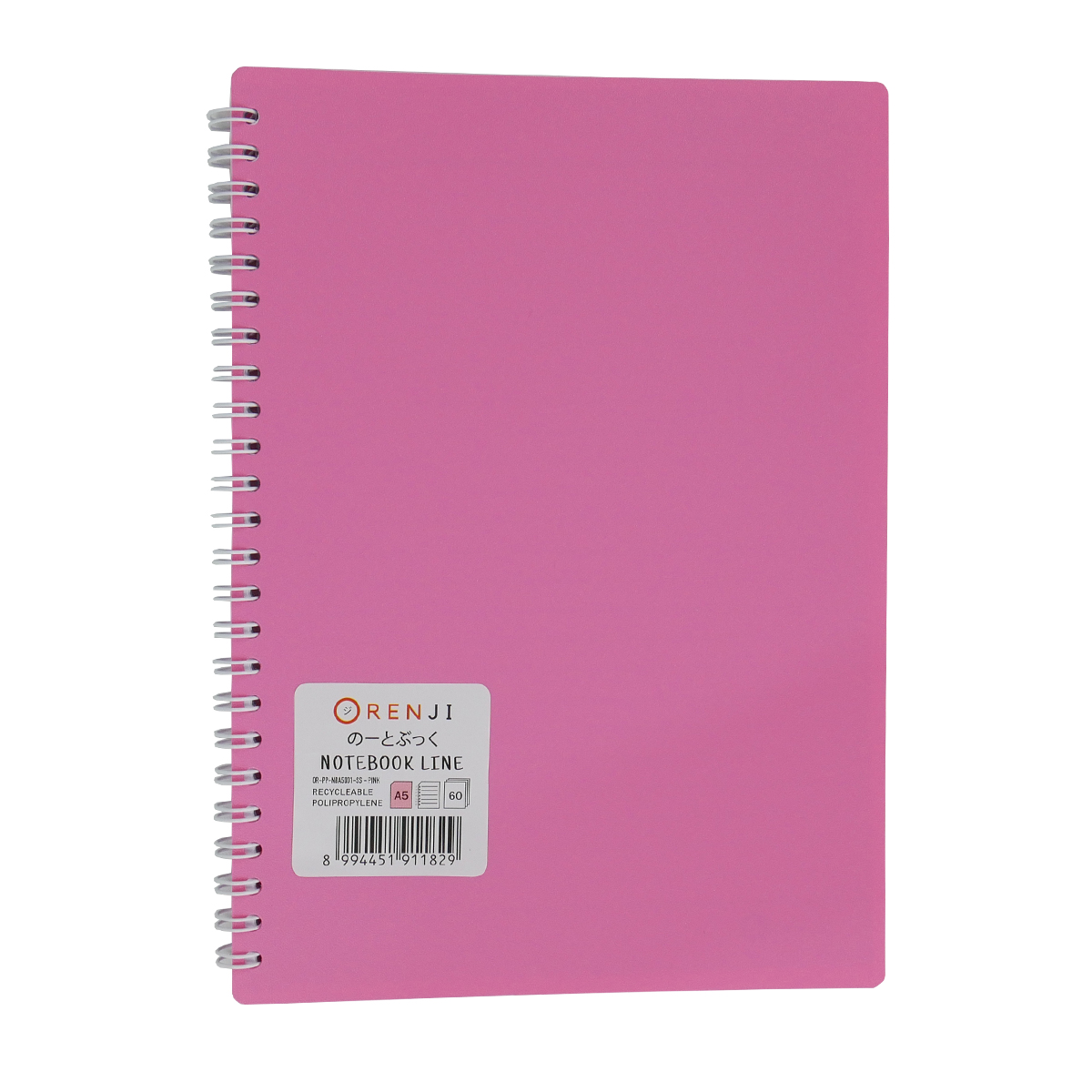 ORENJI Notebook Neon PP Cover Colour A5 LINE Spiral Samping - Pink