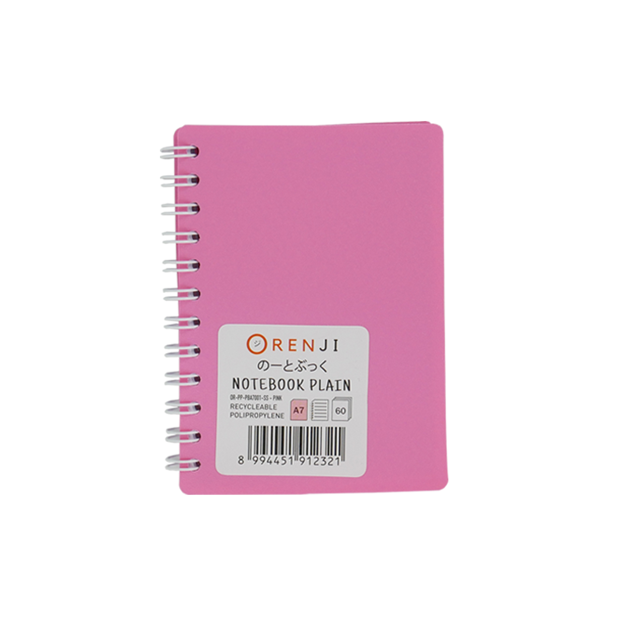 Orenji Notebook PP Cover Colour A7 Plain Spiral Samping Pink