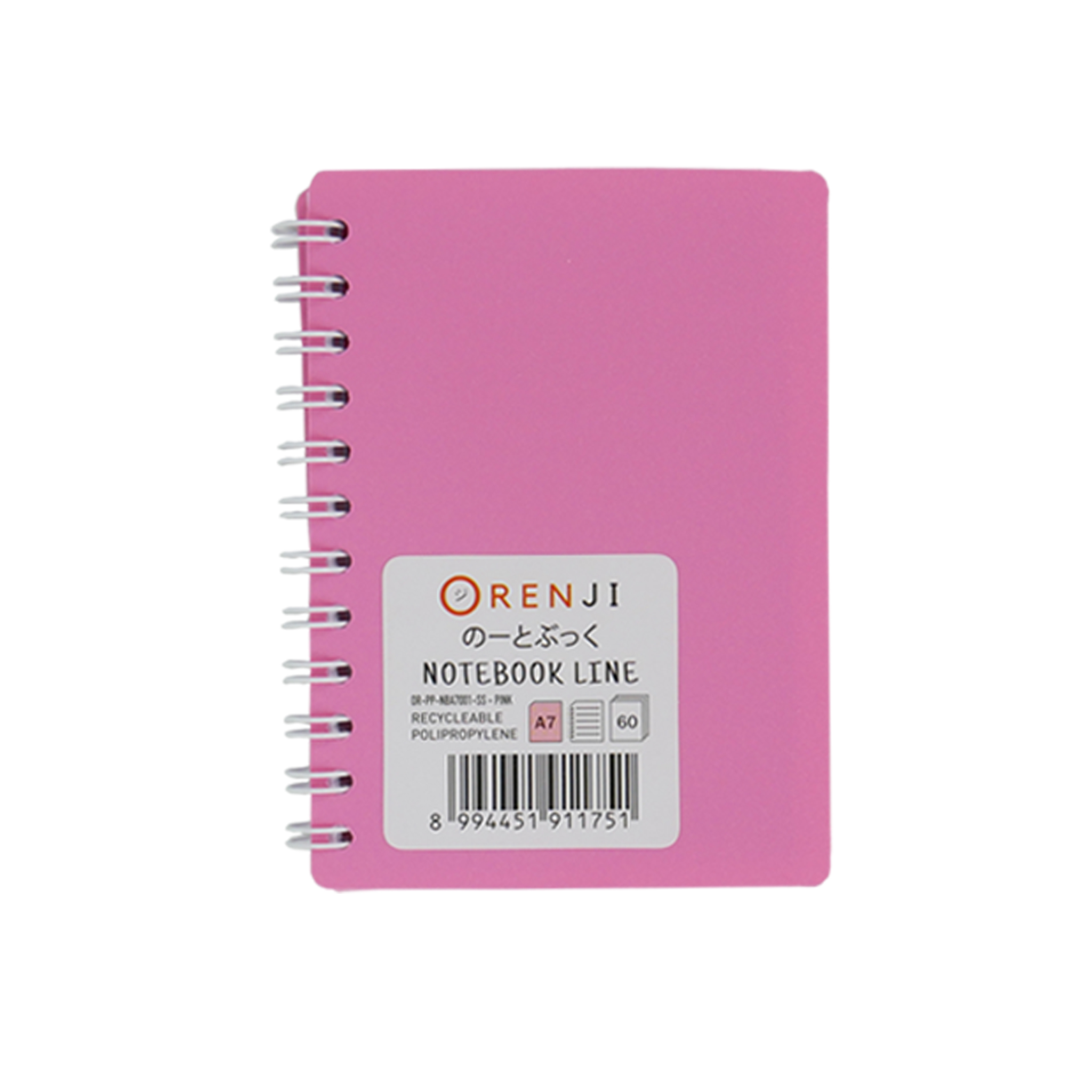 Orenji Notebook pp Cover Colour A7 Line Spiral Samping Pink