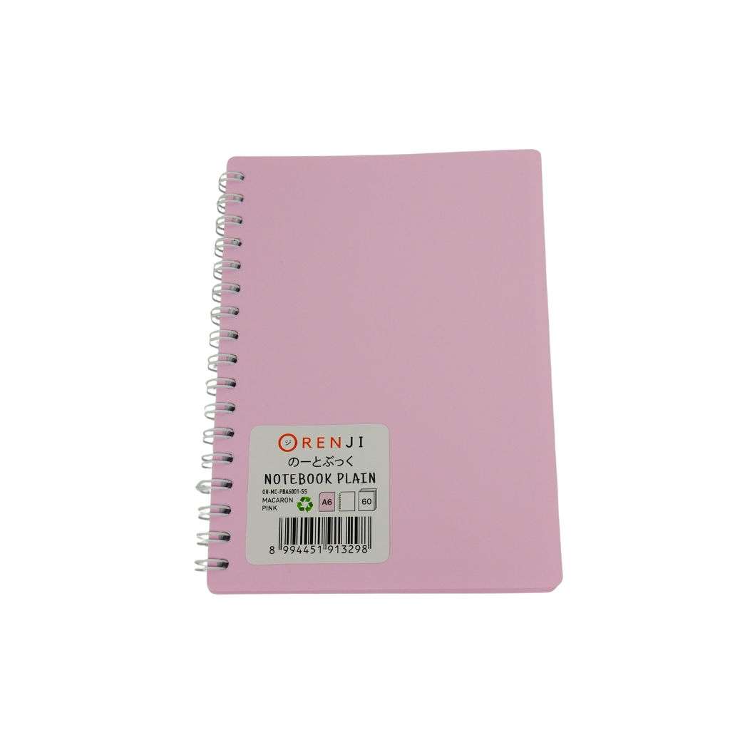 ORENJI Notebook Macaron A6 PLAIN Spiral Samping - Light Pink