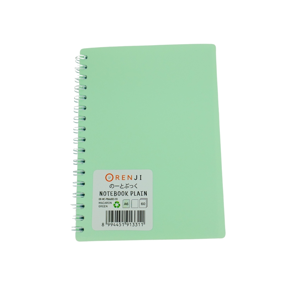 ORENJI Notebook Macaron A6 PLAIN Spiral Samping - Light Green