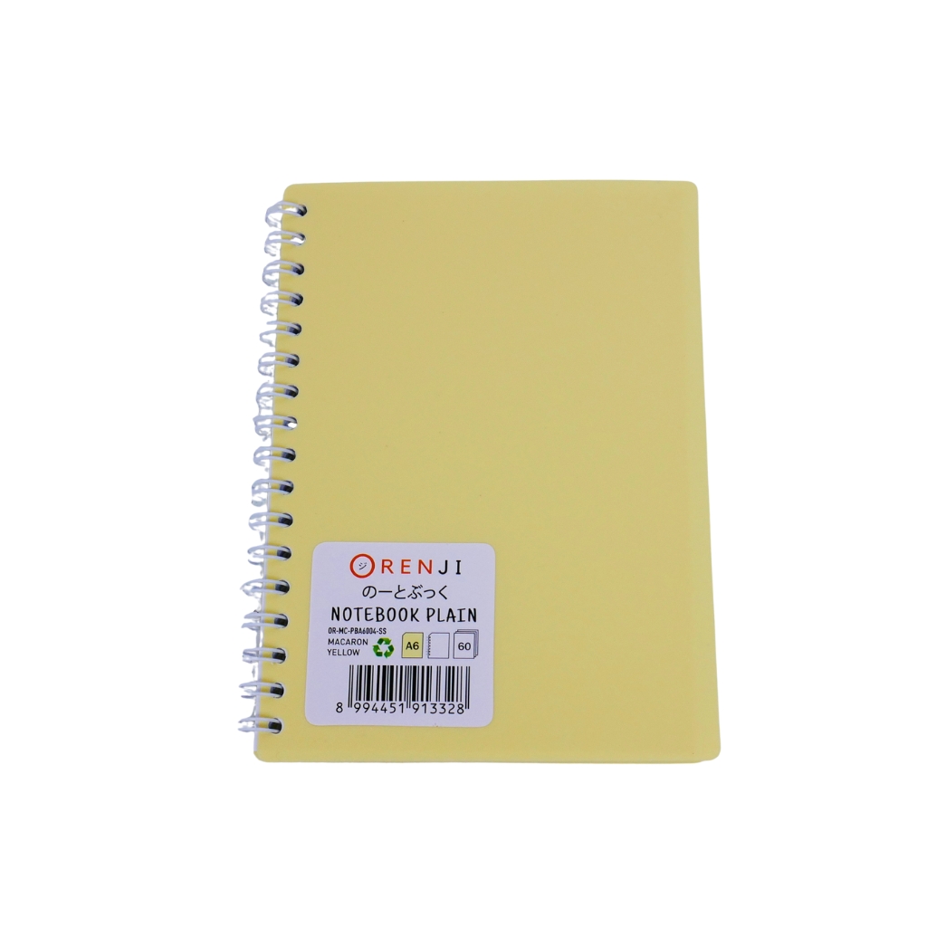 ORENJI Notebook Macaron A6 PLAIN Spiral Samping - Light Yellow