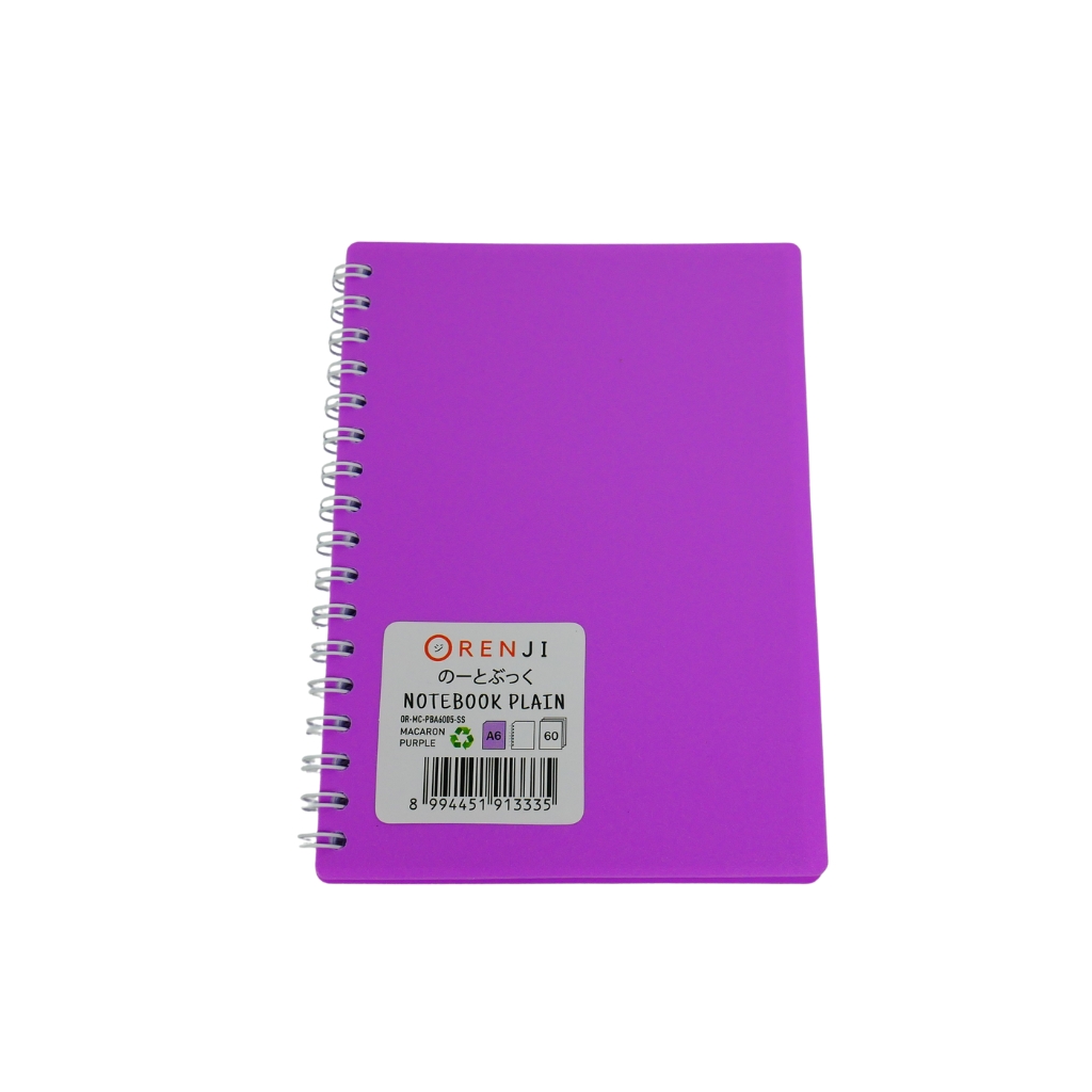 ORENJI Notebook Macaron A6 PLAIN Spiral Samping - Light Purple