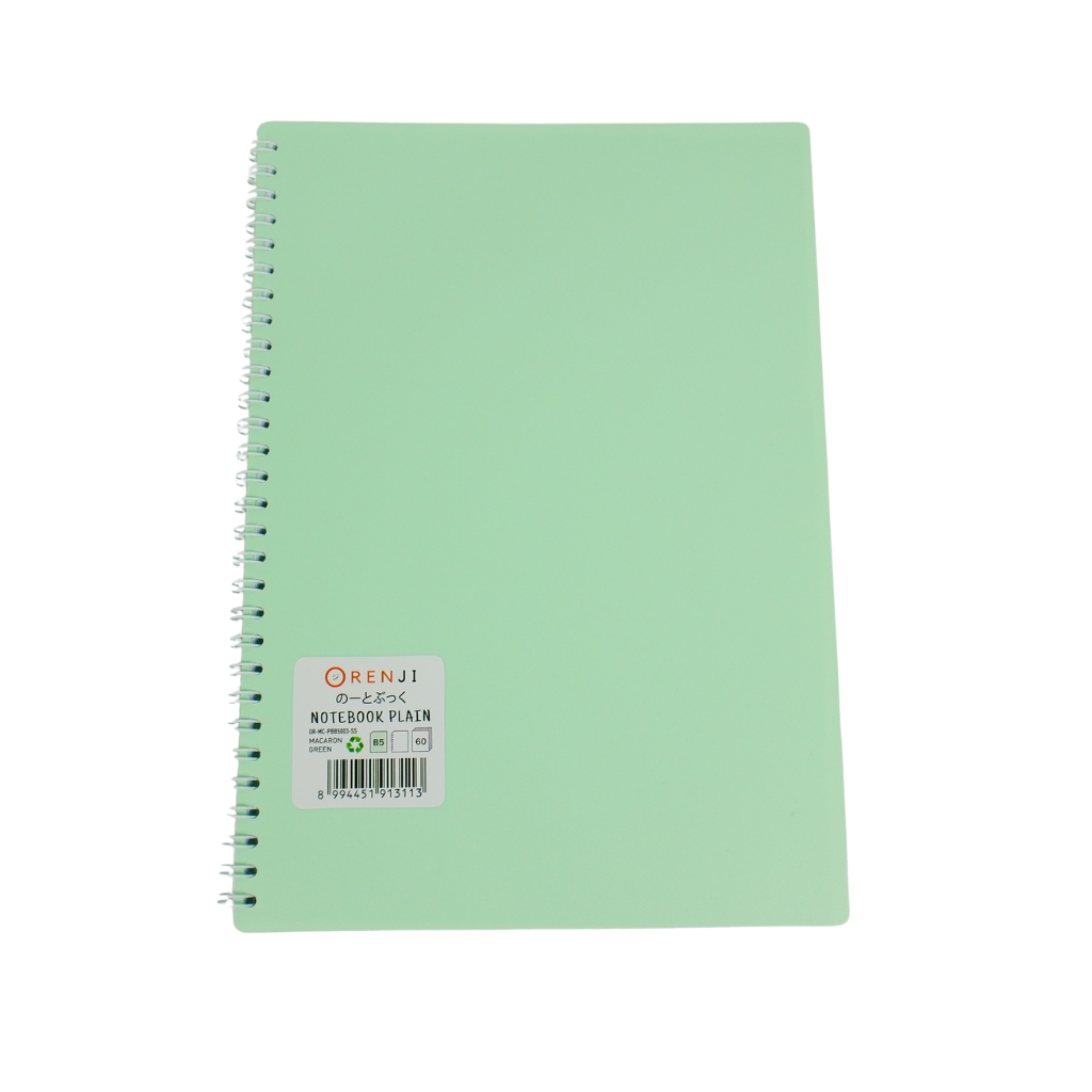 ORENJI Notebook Macaron B5 PLAIN Spiral Samping - Light Green