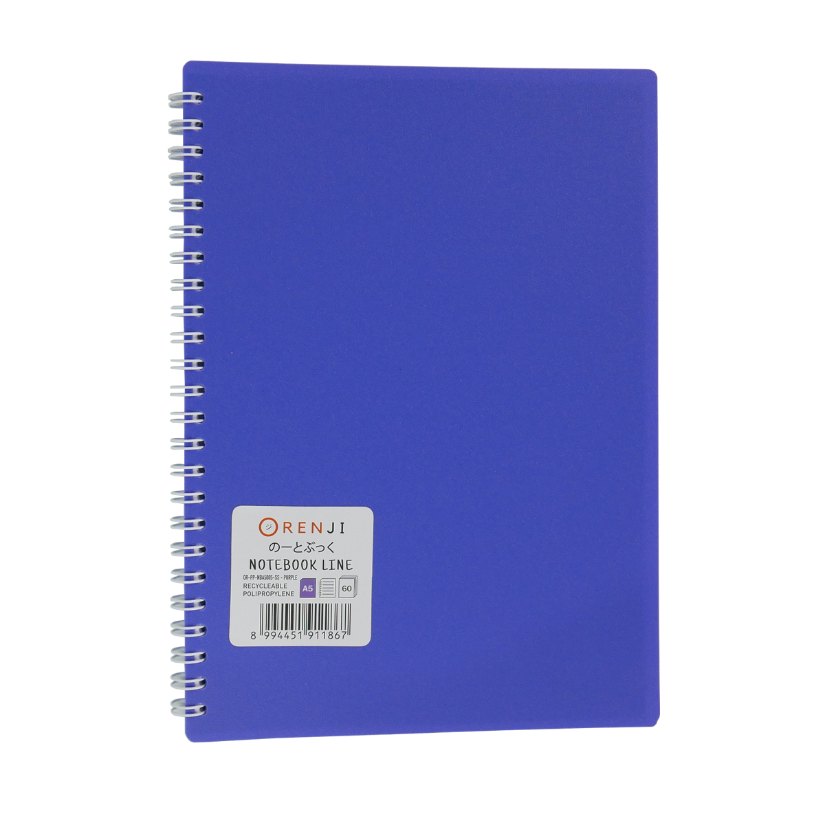 ORENJI Notebook Neon PP Cover Colour A5 LINE Spiral Samping - Purple