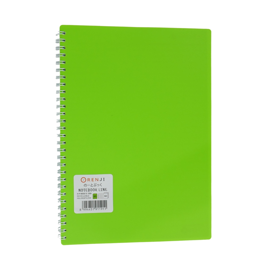 ORENJI Notebook Neon PP Cover Colour B5 LINE Spiral Samping - Green