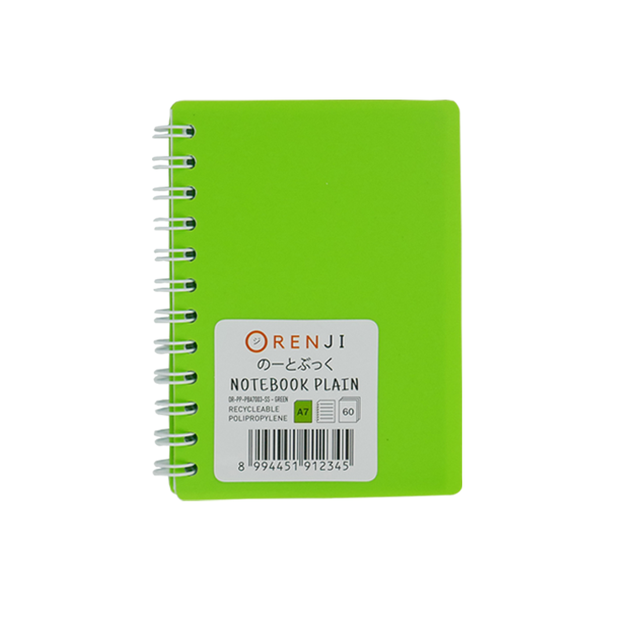 Orenji Notebook PP Cover Colour A7 Plain Spiral Samping Green