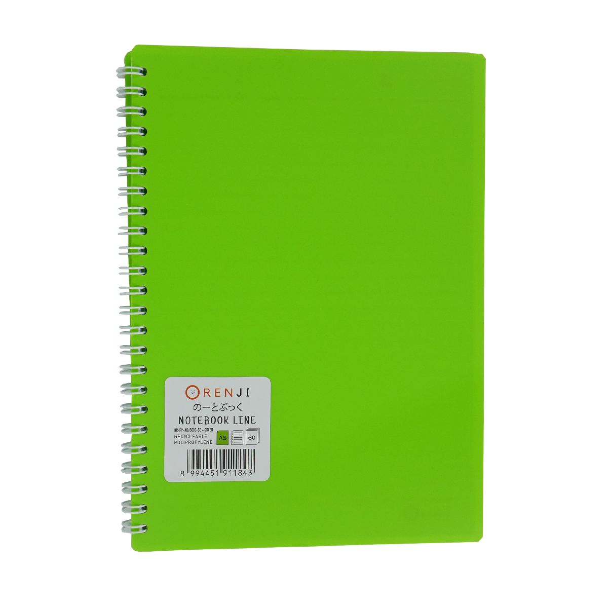 Orenji Notebook pp Cover Colour A5 Line Spiral Samping Green