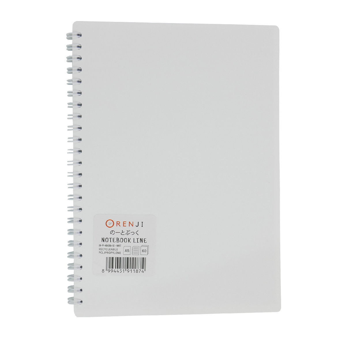 Orenji Notebook pp Cover Colour A5 Line Spiral Samping White
