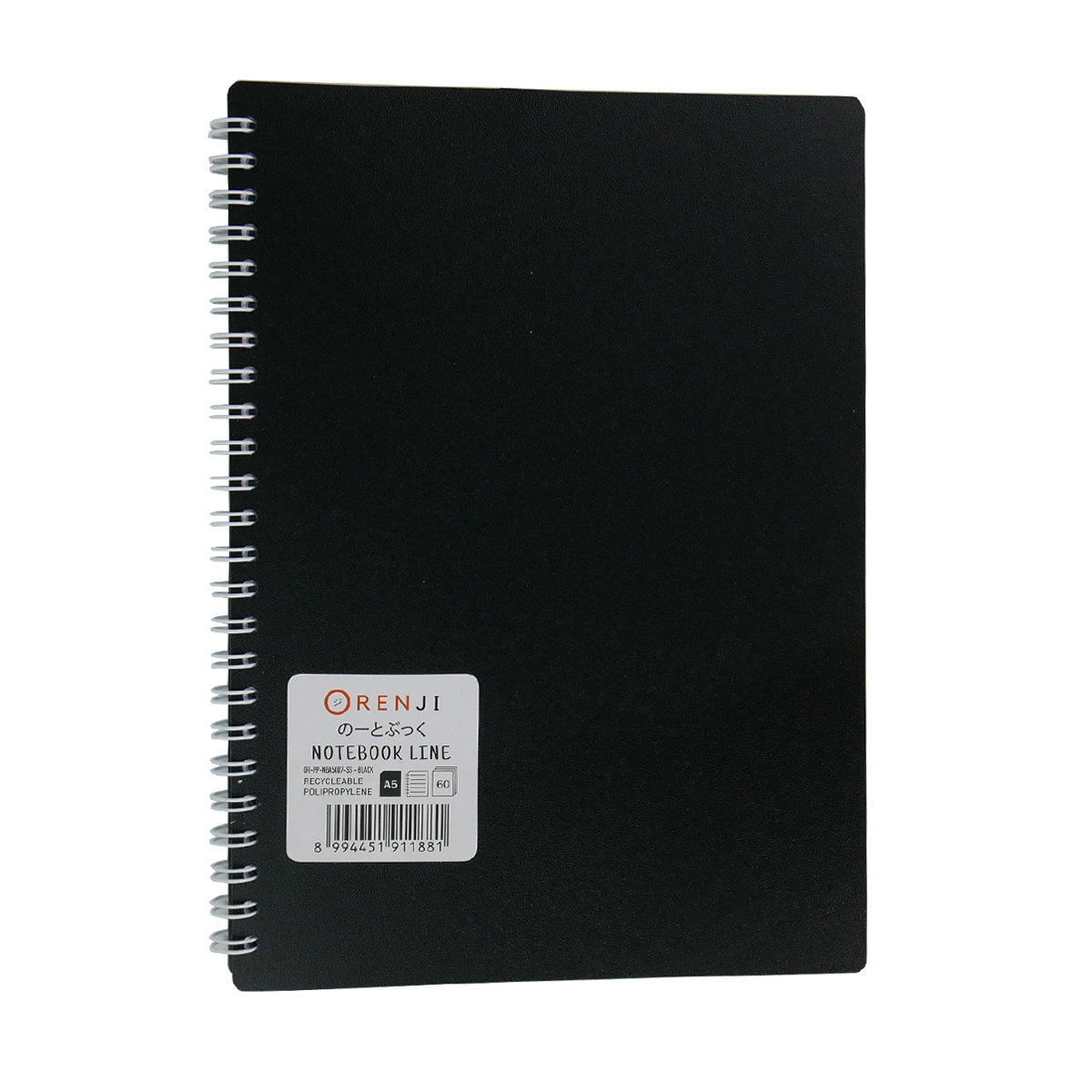 Orenji Notebook pp Cover Colour A5 Line Spiral Samping Black
