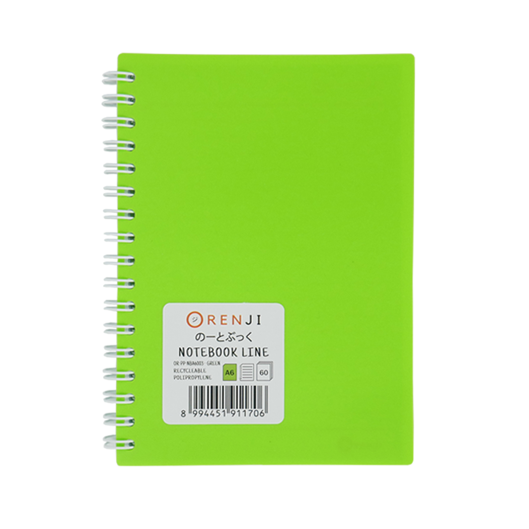 Orenji Notebook pp Cover Colour A6 Line Spiral Samping Green