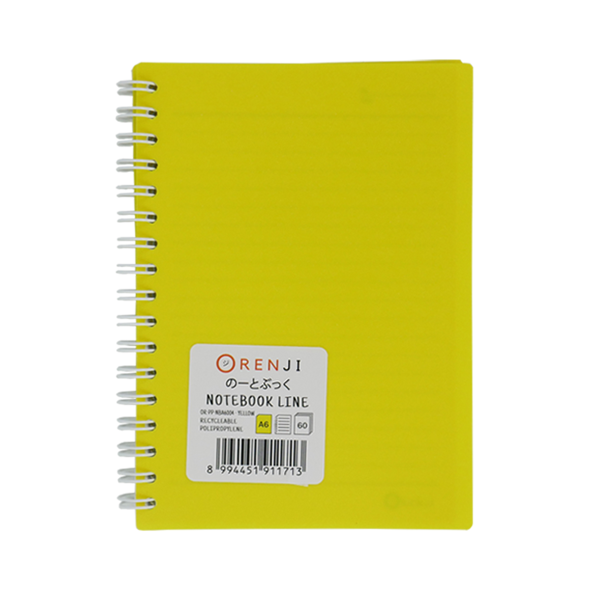 Orenji Notebook pp Cover Colour A6 Line Spiral Samping Yellow