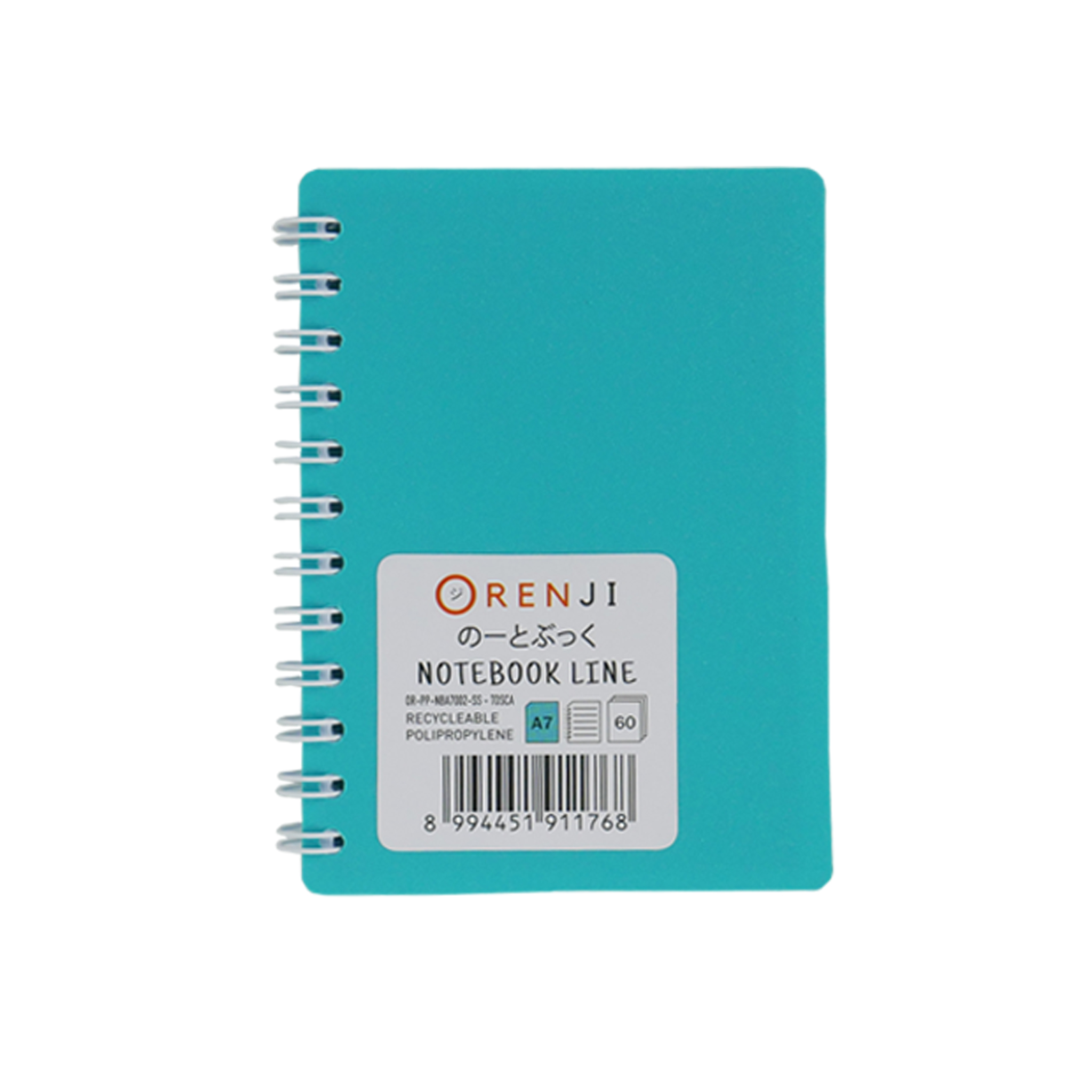 Orenji Notebook pp Cover Colour A7 Line Spiral Samping White